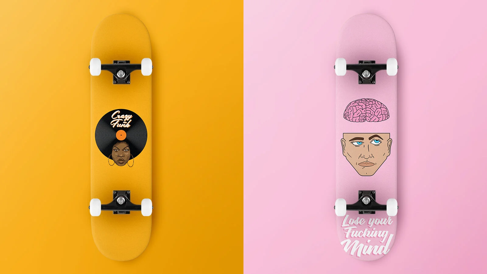 Création d’illustrations pour des planches à roulettes personnalisées.